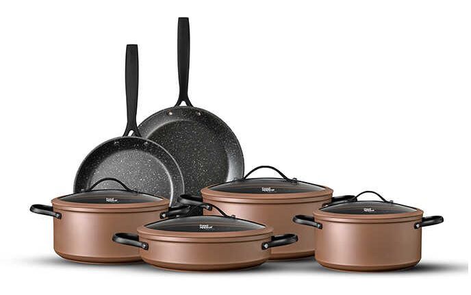 סט סירים 10 חלקים – REGAL נחושת ידיות שחור מט פוד אפיל FOOD APPEAL