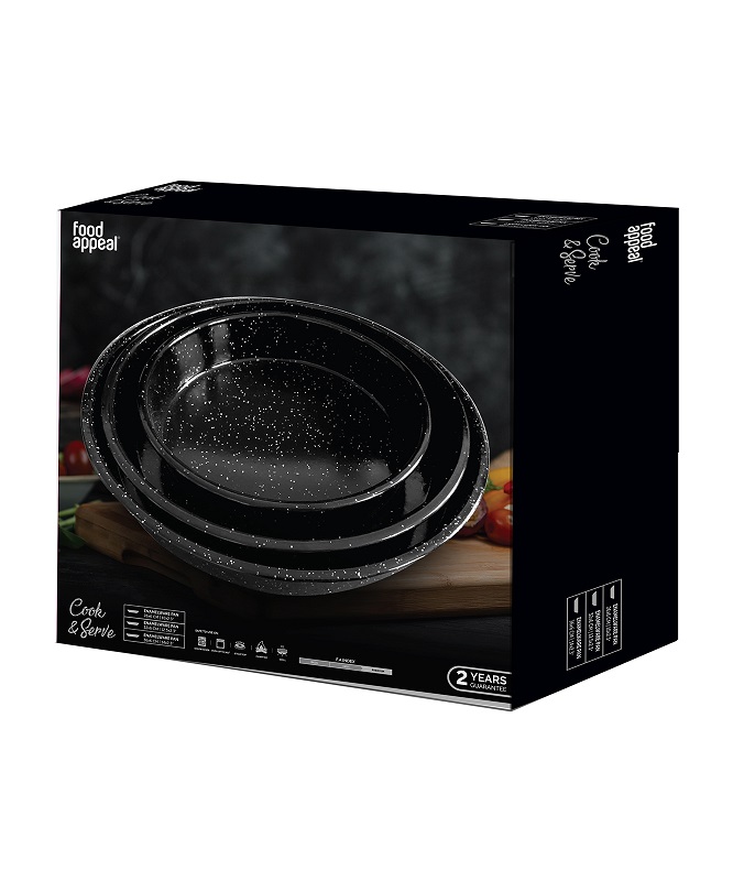 סט 3 תבניות עגולות אמייל ENAMELWARE שחור Food Appeal