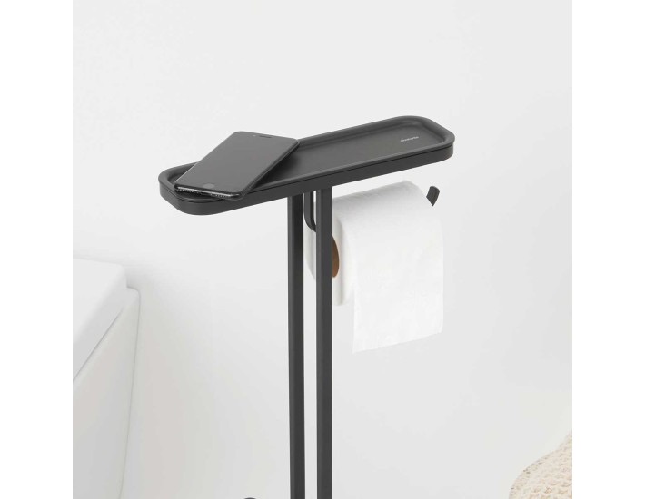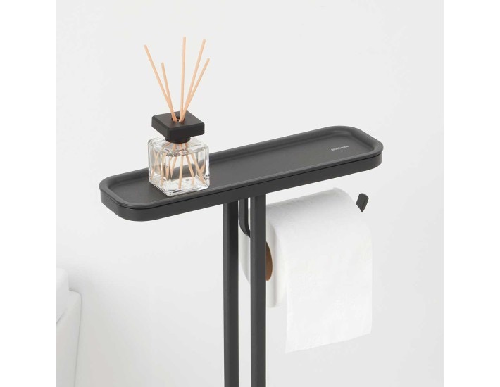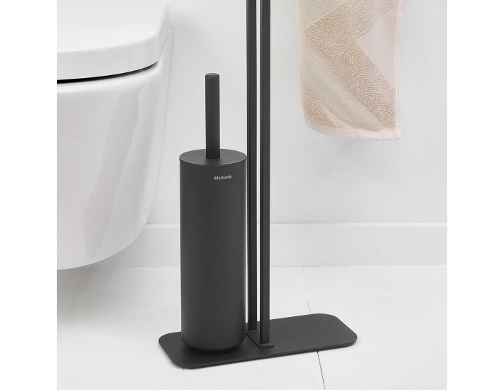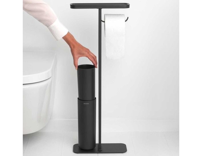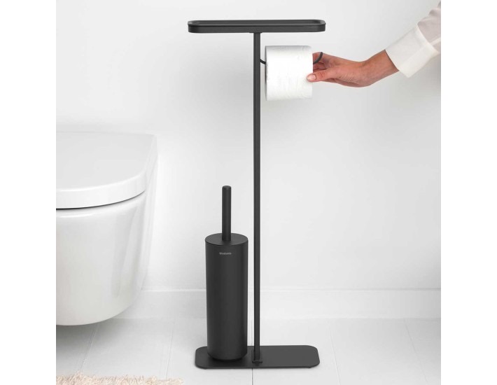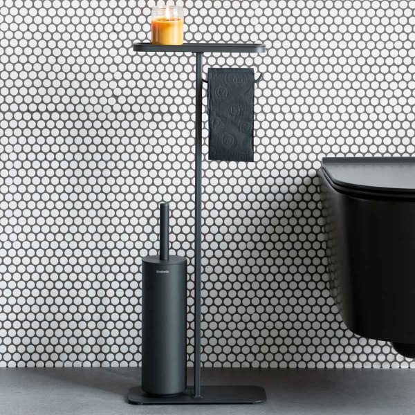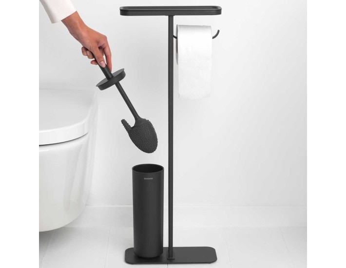 מעמד לנייר טואלט, מברשת אסלה סיליקון ומדף – באטלר שחור מינרלי Brabantia