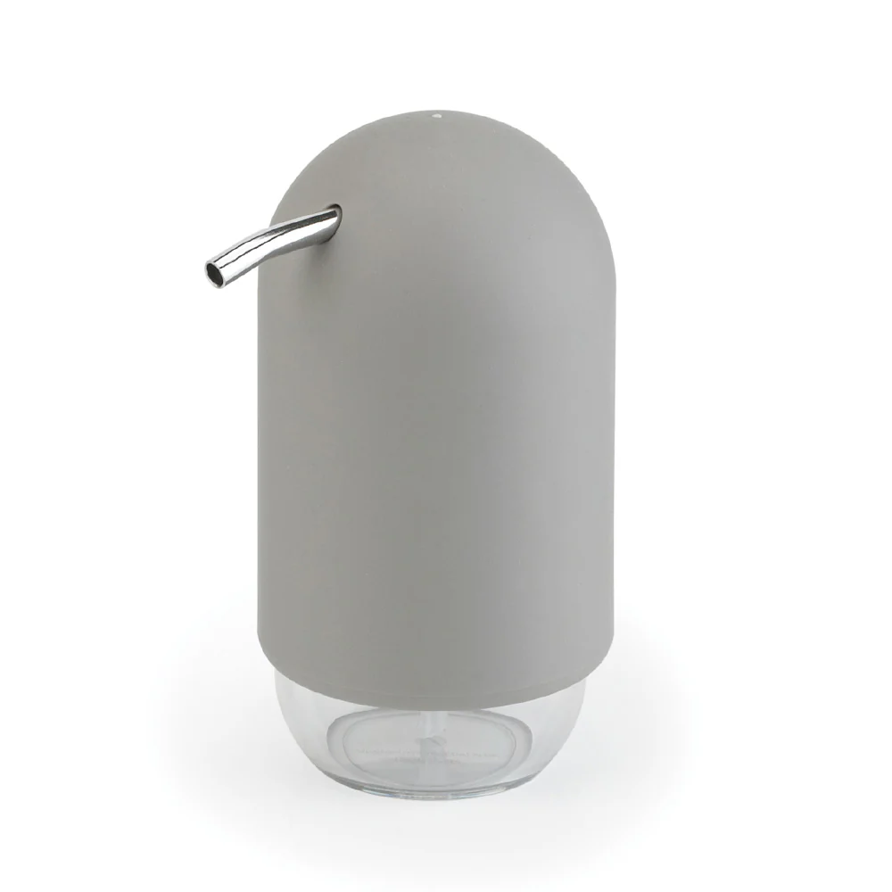 דיספנסר לסבון מסדרת Touch של המותג אומברה, בצבע אפור. סדרת המוצרים Touch הינה אוסף של אביזרי אמבט המעוצבים בצורה נקייה, עגולה ומתוחכמת, אשר תוסיף אופי לכל חדר אמבטיה.