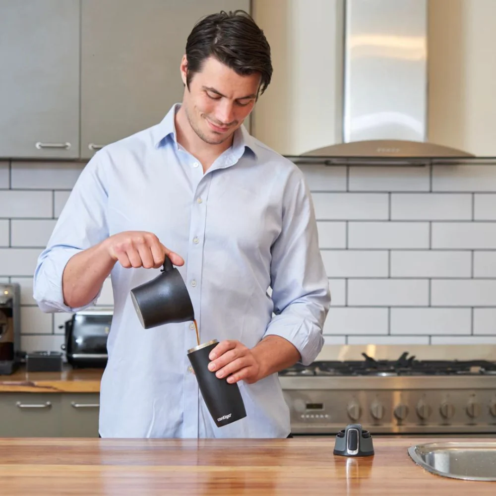 כוס טרמית קונטיגו המיועדת למשקאות חמים/קרים, בעלת מבנה דו- שכבתי לבידוד טמפ' המשקאות בחום עד 4 שעות ומשקאות קרים עד 12 שעות.