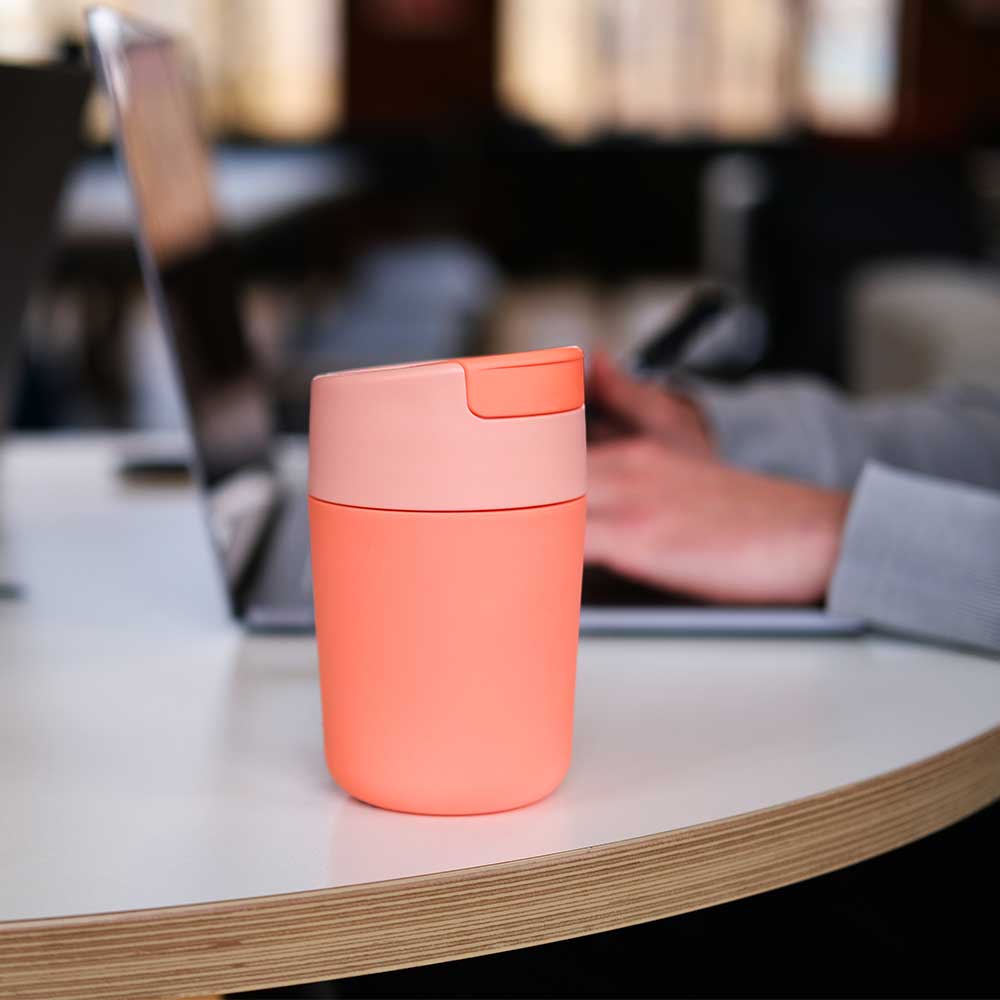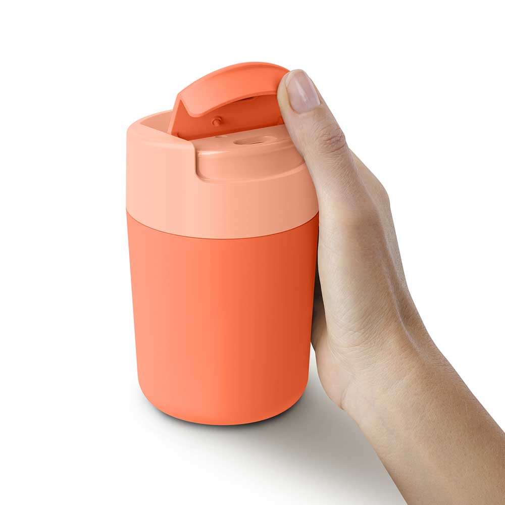 כוס לשתייה חמה, נוחה לאחיזה ובעלת עיצוב חכם. מעוצבת עם מכסה הניתן לפתיחה ולסגירה בקלות, כך שתוכלו ליהנות מהמשקה האהוב עליכם תוך כדי תנועה בלי נזילות מהפיה. המוצר מתאים לשימוש חוזר ומהווה אלטרנטיבה ירוקה לשימוש בכלים חד פעמיים המזהמים את הסביבה.