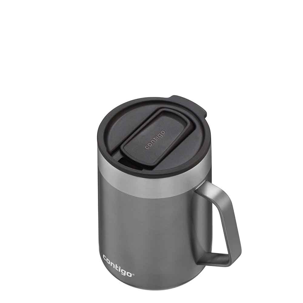 מאג עם מכסה SnapSeal ייחודי של contigo המאפשר סגירה של הפיה כאשר הכוס אינה בשימוש. המאג מעוצב בסטייל ובצבעים מתכתיים שמושכים את העין, ויחד עם הידית הנוחה שלו, הוא המאג המושלם לבית או המשרד.