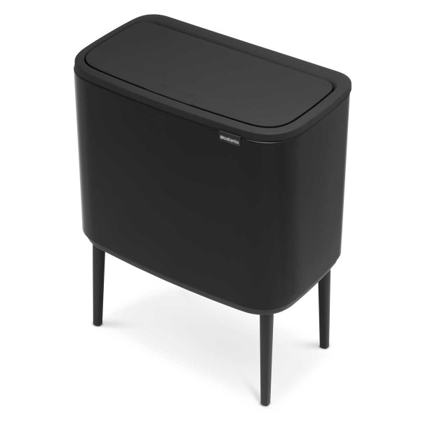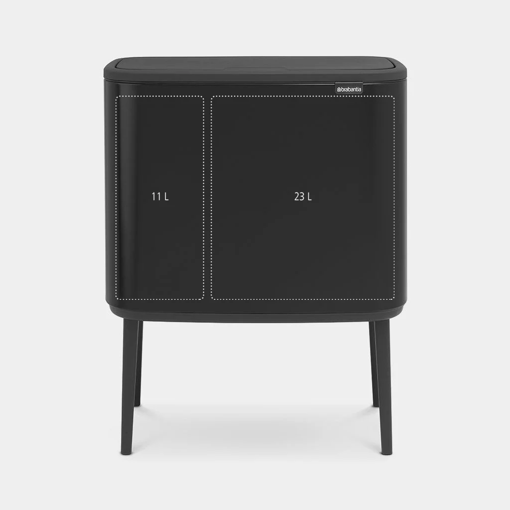 BO טאץ פח הפרדה 11+23 ליטר, שחור מט Brabantia – פח הפרדה יפה ויוקרתי – 34 ליטר של עיצוב מרהיב – כן, ממש רהיט של פח עם רגליים ושני תאים נפרדים להפרדת אשפה אורגנית ומיחזור