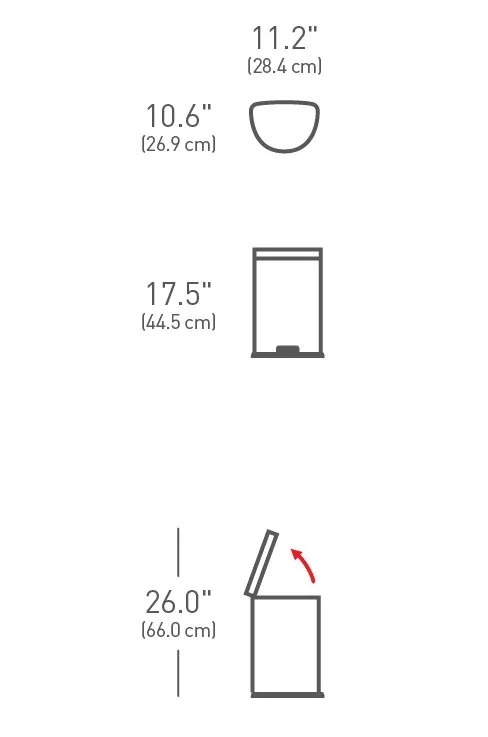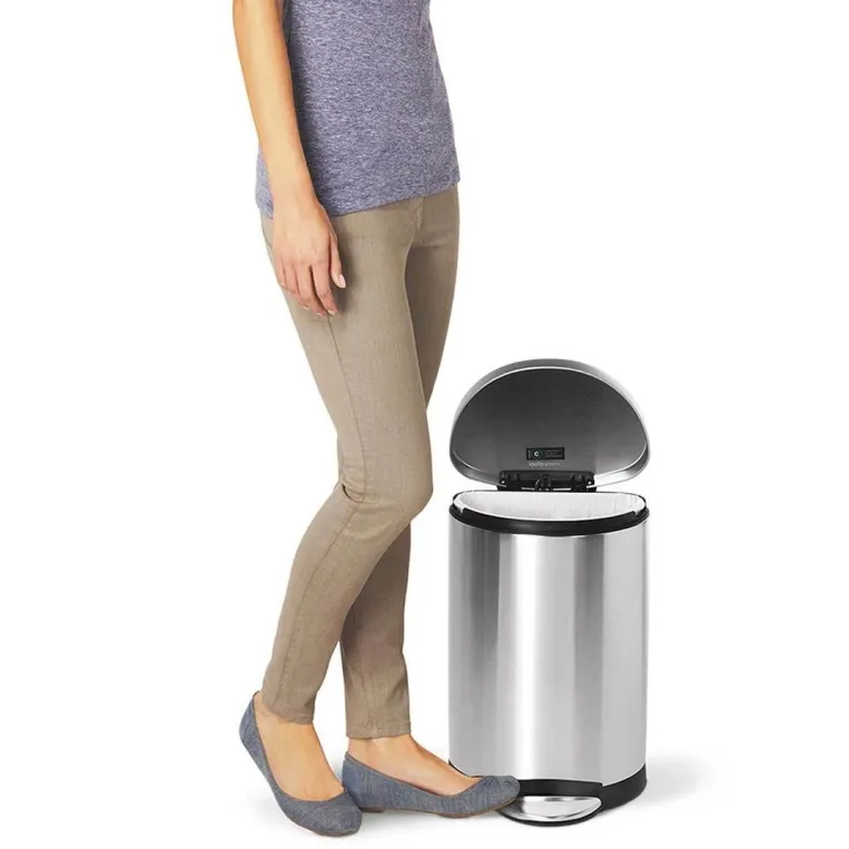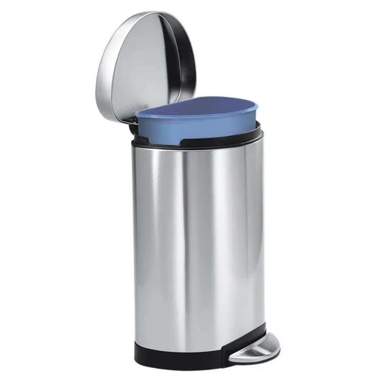 פח דוושה חצי עגול מושלם לחללים קטנים יותר כמו חדר אמבטיה או משרדף עם פח פנימי נשלף לשימוש נוח ופשוט.