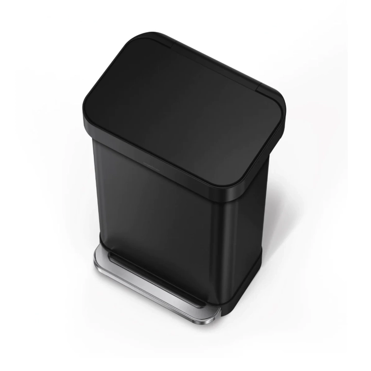 פח דוושה רחבה מלבני, שחור מאט 45 ליטר סימפלהיומן Simplehuman