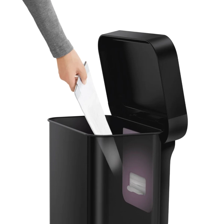 הדור החדש של הפחים! פח 45 הליטר המלבני של חברת סימפלהיומן האמריקאית כולל כיס פנימי לשקיות – להחלפה פשוטה וקלה. צורתו המלבנית יכולה להתאים לכל מקום – העמדה קרוב לקיר, פינות הבית ועוד.