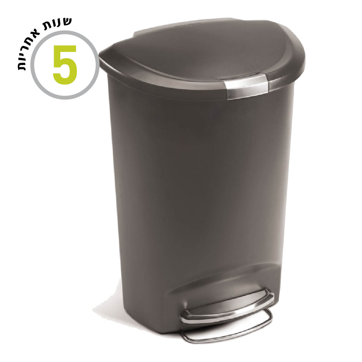 פח פלסטיק דוושה חצי עגול 50 ליטר אפור סימפלהיומן Simplehuman