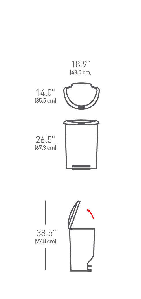 הפח מאובזר ברגלית מתכת חזקה במיוחד אשר עוצבה על מנת להקנות לפח עמידות רבה לאורך זמן רב. מכסה הפח בעל פטנט ה- Lid Shox מווסת את תנועת המכסה ומאפשר סגירה שקטה ואיטית.