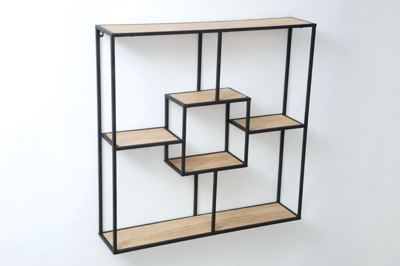 נישת מתכת בשילוב מדפי עץ מרובעת