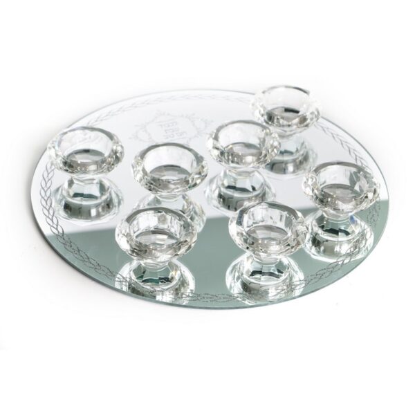 7 פמוטי קריסטל על מגש מראה עגול קוטר 30 ס”מ