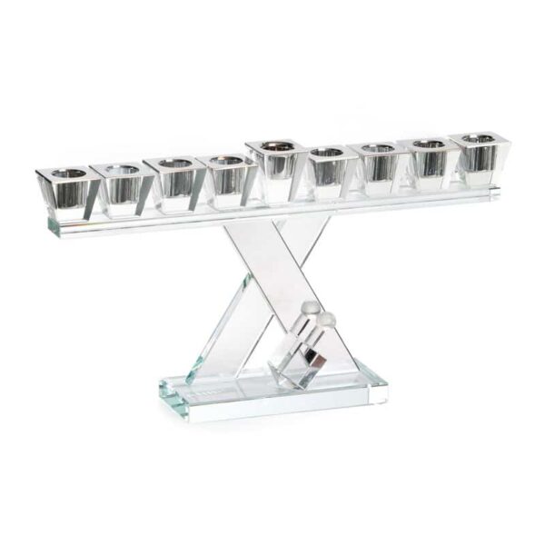 חנוכיה קריסטל שילוב כסף דגם X.