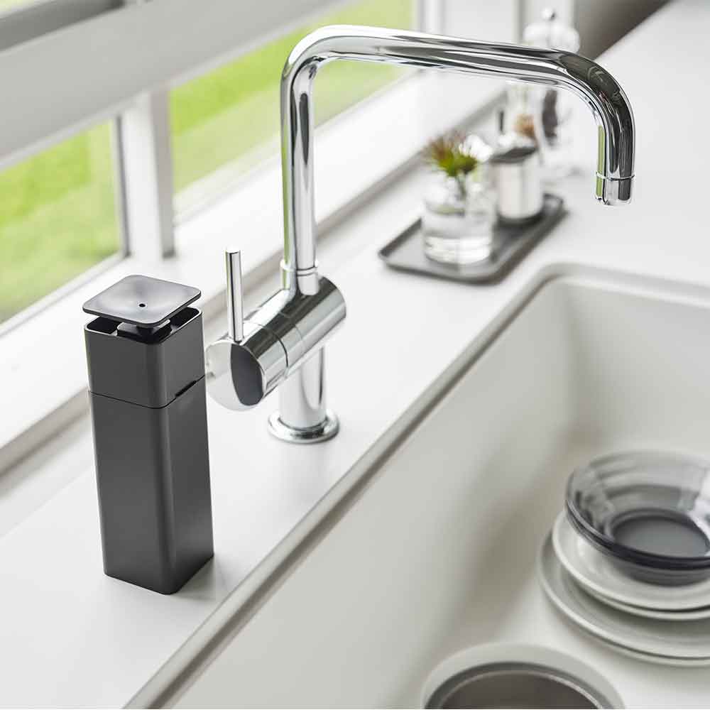 הפכו את שטיפת הכלים שלכם לפשוטה יותר עם דיספנסר הסבון של המותג היפני ימזאקי. עם עיצוב נקי ומינימליסטי, ותפעול נוח ביד אחת, ניתן פשוט להניח את הספוג על מכסה הדיספנסר וללחוץ כלפי מטה לשחרור של סבון כלים. יכול להכיל כ- 250 מ"ל סבון.