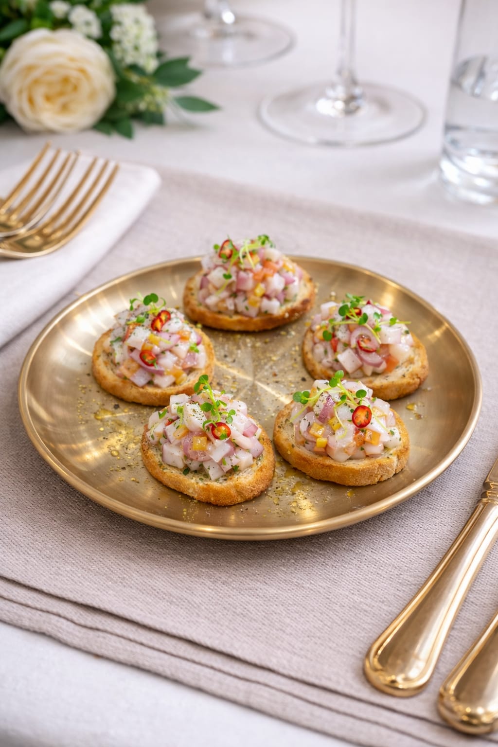 צלחת מתכת בגימור זהב מוברש, בעיצוב נקי ואלגנטי שמכניס טאץ' יוקרתי לכל שולחן. הגימור המעודן יוצר משחקי אור עדינים שמדגישים גל מנה שמונחת עליה – מקינוחים ועד מנות ראשונות.