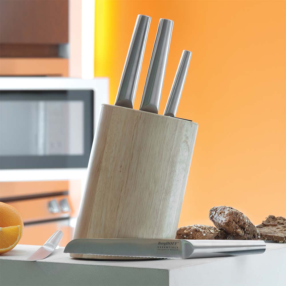 מחפשים להרחיב את אוסף סכיני המטבח שלכם? הסט הזה מסדרת Essentials מושלם עבורכם! מדובר בסט הכולל 5 סכיני חיתוך ומעמד סכינים מעץ.