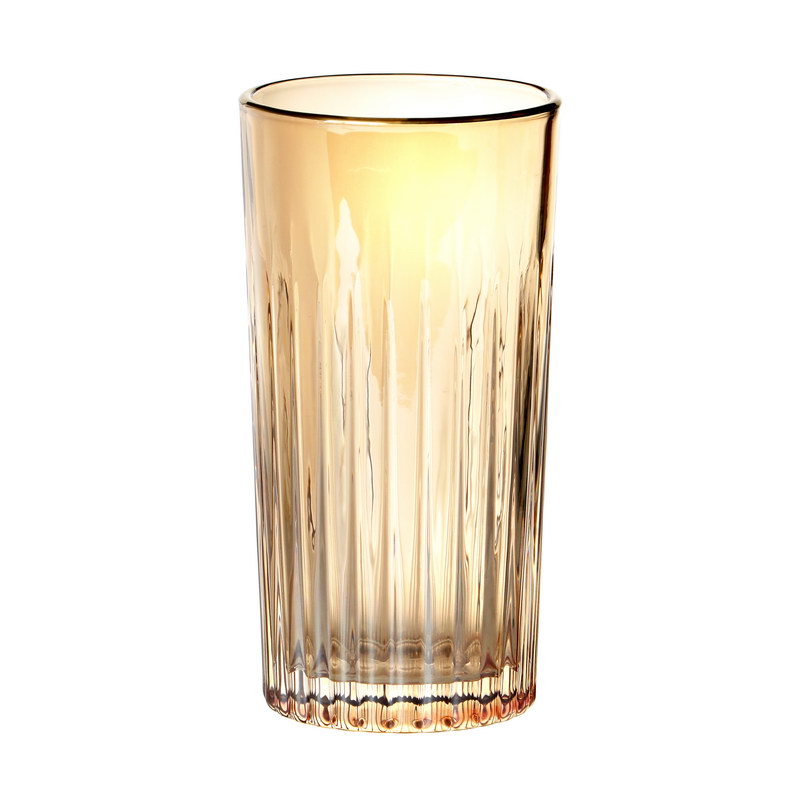 סט 6 כוסות שתייה קרה זכוכית אמבר פסים 360 מ”ל פס זהב