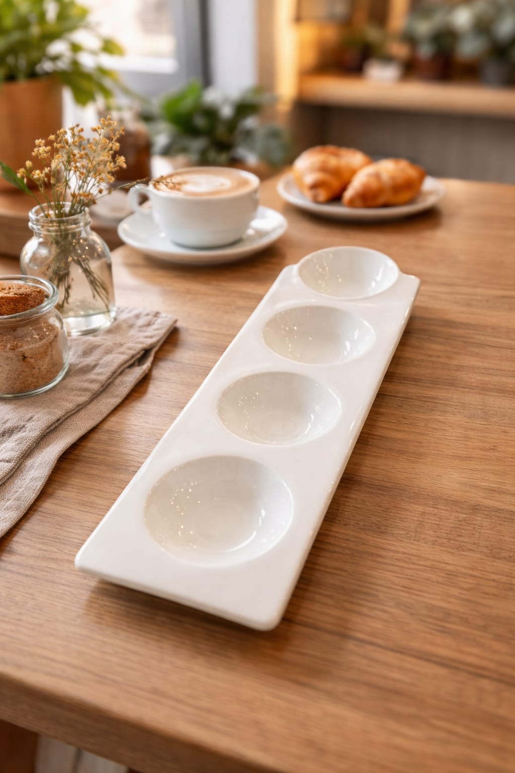 צלחת פורצלן להגשת מטבלים, 4 שקעים.