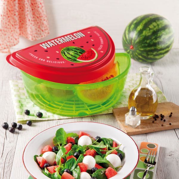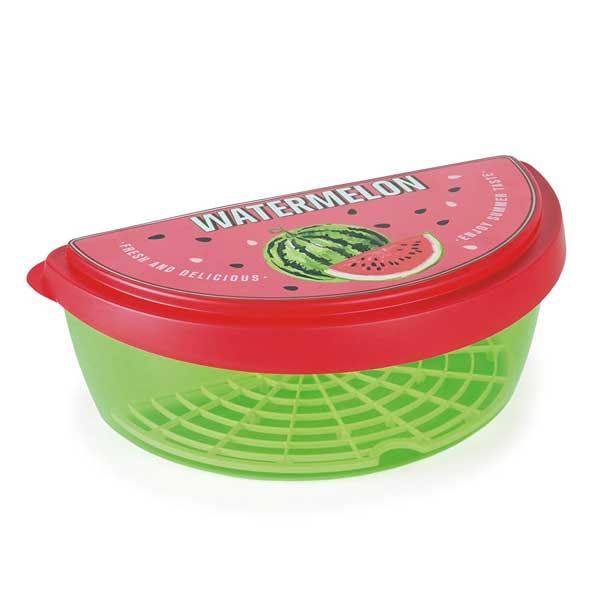 קופסה מעוצבת כאבטיח בנפח 3 ליטר עם רשת פלסטיק מוגבהת לניקוז נוזלים השומרת על טריות הפרי בכל זמן