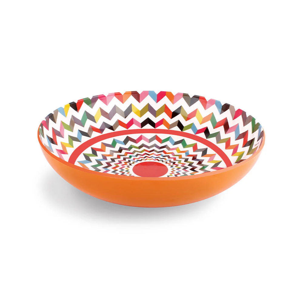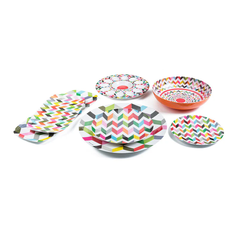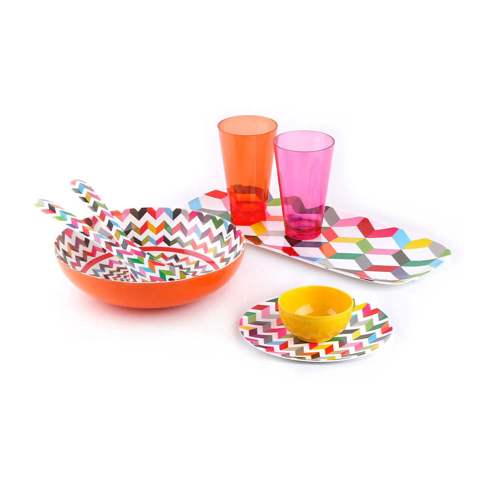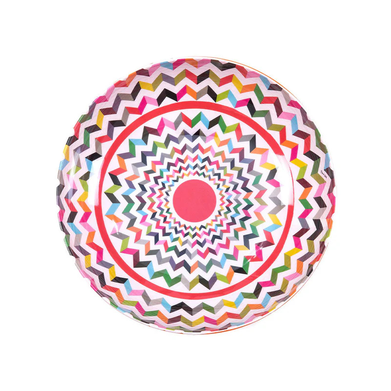 קערת הגשה גדולה עם טקסטורה גרפית גיאומטרית ססגונית של המותג פרנץ' בול. מתאימה להגשת סלט, פירות או חטיפים. הצבעוניות של הקערה וצורתה ישתלבו היטב עם שאר מוצרי פרנץ' בול בכדי שתוכלו לערוך שולחן ייחודי וצבעוני בכל ארוחה. עשוי מלמין איכותי (ללא BPA) למניעת שריטות.