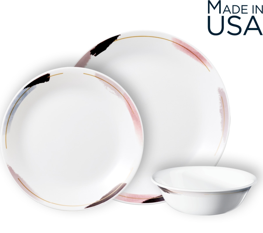 סט צלחות קורנינג קורל כולל 18 חלקים, מתאים ל- 6 סועדים: