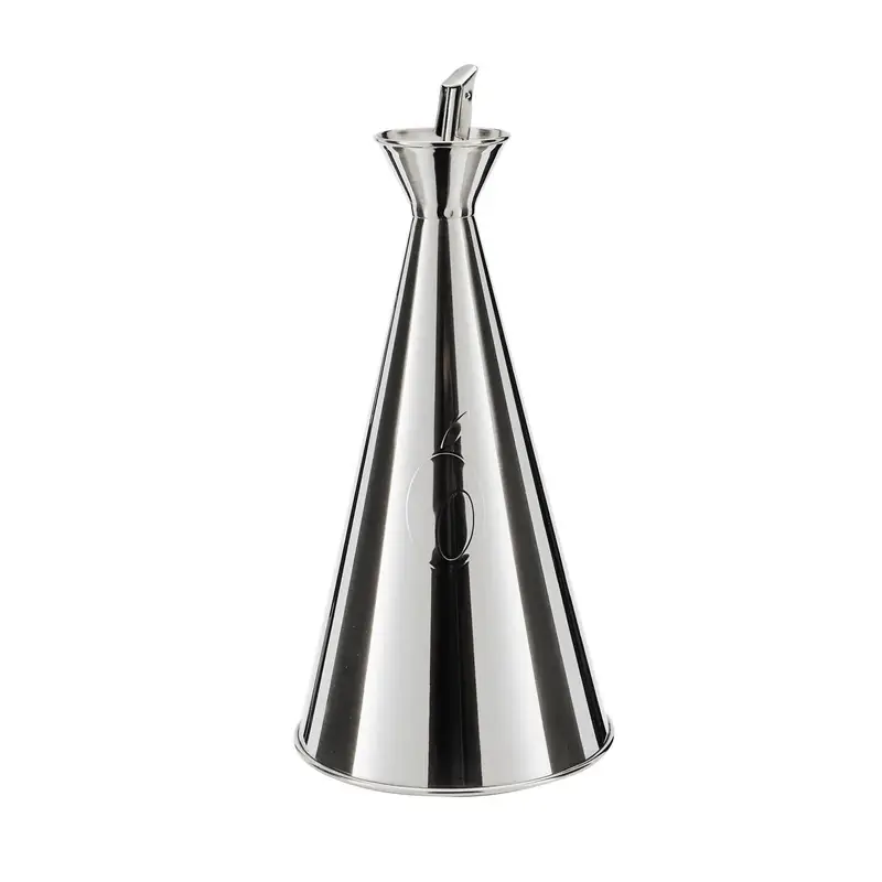 כד שמן אלגנטי עשוי מפלדת אל-חלד, אידאלי לאחסון ומזיגת שמן בצורה נוחה. העיצוב המודרני בצורת חרוט עם גימור מבריק הופך אותו לא רק לפריט פונקציונלי אלא גם לאביזר דקורטיבי, שמתאים להצבה על השיש במטבח או על שולחן האוכל. הכד מצויד בזרבובית שימושית עם מנגנון פתיחה וסגירה, המאפשרת מזיגה מדויקת והיגיינית תוך שמירה על טריות השמן. לוגו חרוט בצורת זית מוסיף מגע מסוגנן וייחודי.