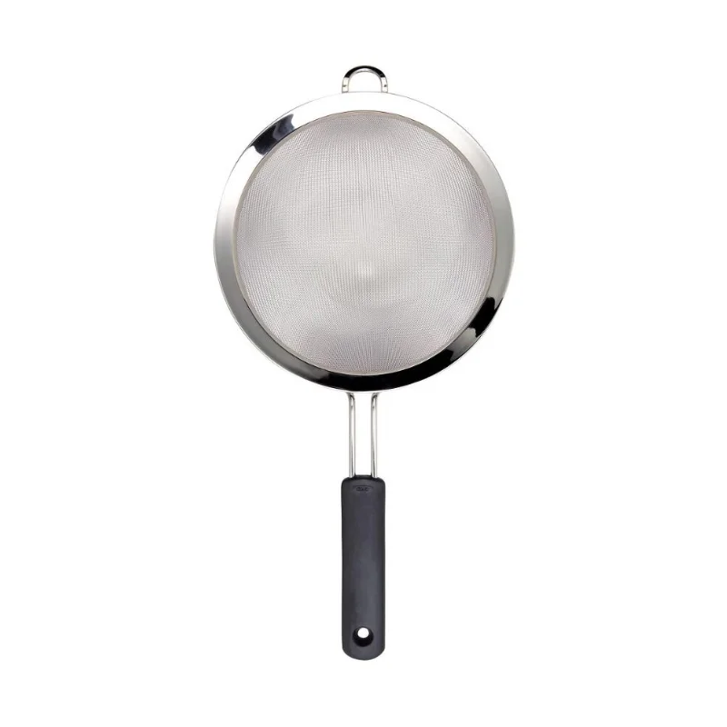 המסננת של OXO, בקוטר רחב של 20 ס”מ, אידיאלית לשטיפה וסינון של נוזלים עודפים ממגוון רחב של מזונות, כולל ירקות, פירות יער, פסטה, דגנים ועוד. המסננת עשויה מנירוסטה חזקה במיוחד, כוללת שפת נירוסטה רחבה ולולאת איזון קטנה, המסייעת בשמירה על יציבותה על גבי קערות או סירים. הידית רכה ונוחה לאחיזה ואינה מחליקה, אפילו כשהיא רטובה.