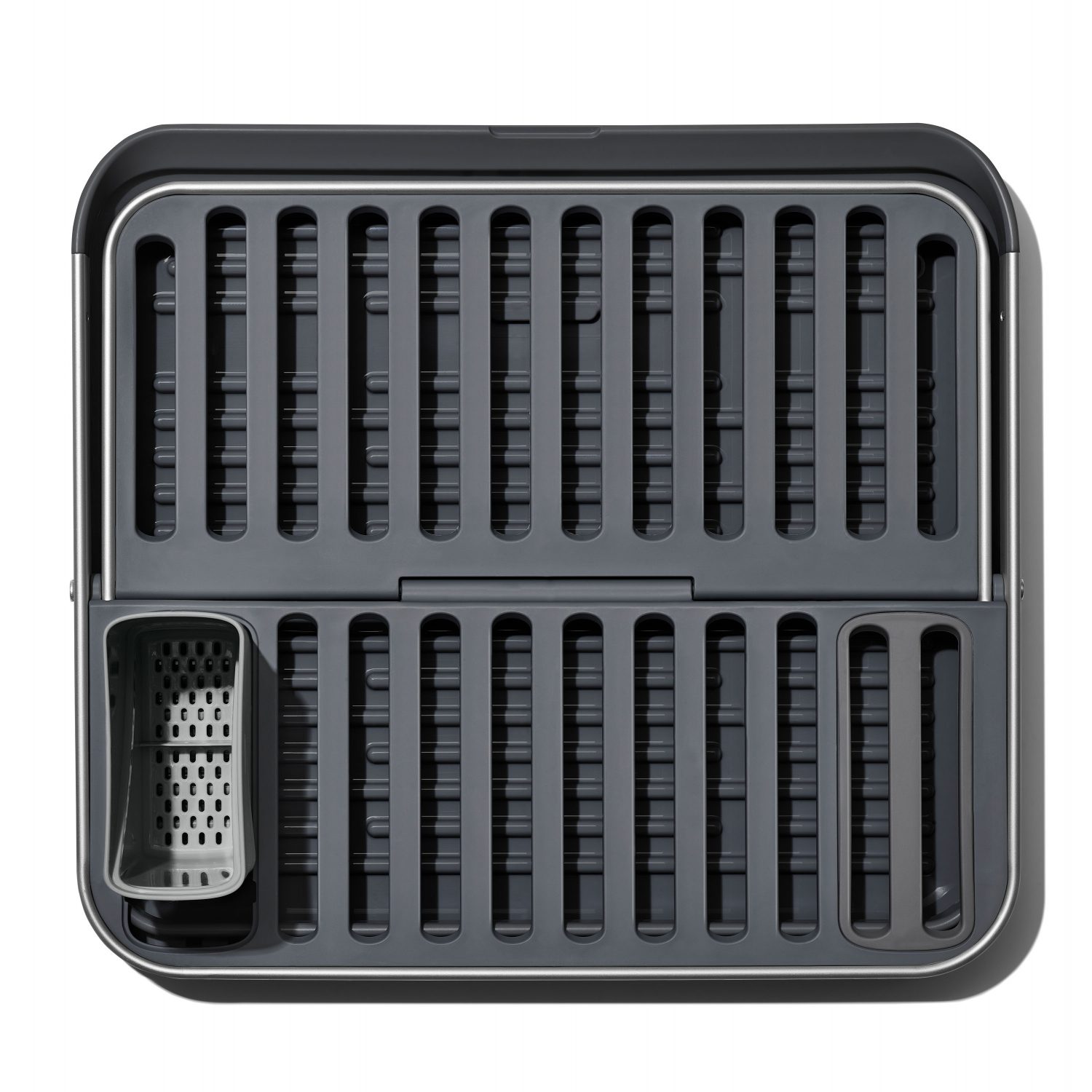 מתלה הכלים השטוח מתקפל מאלומיניום של OXO הוא הפתרון הגמיש לייבוש כלים.