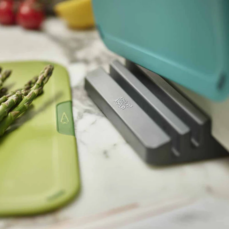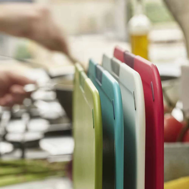 שמרו על משטחי החיתוך שלכם מסודרים להפליא עם סט הכולל 4 קרשי חיתוך ומעמד דק ומעוצב. קרשי החיתוך מעוצבים עם קידוד צבע, כל אחד מהם יכול לשמש לחיתוך סוג מזון אחר לשמירה על היגיינה. כל משטחי החיתוך ידידותיים לשימוש ובעלי פונקציה למניעת החלקה. ניתן לשלוף בקלות את הלוחות עצמם מהמעמד והרווח בין קרש לקרש מאפשר אוורור.