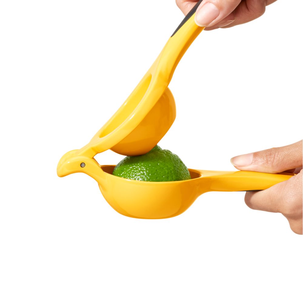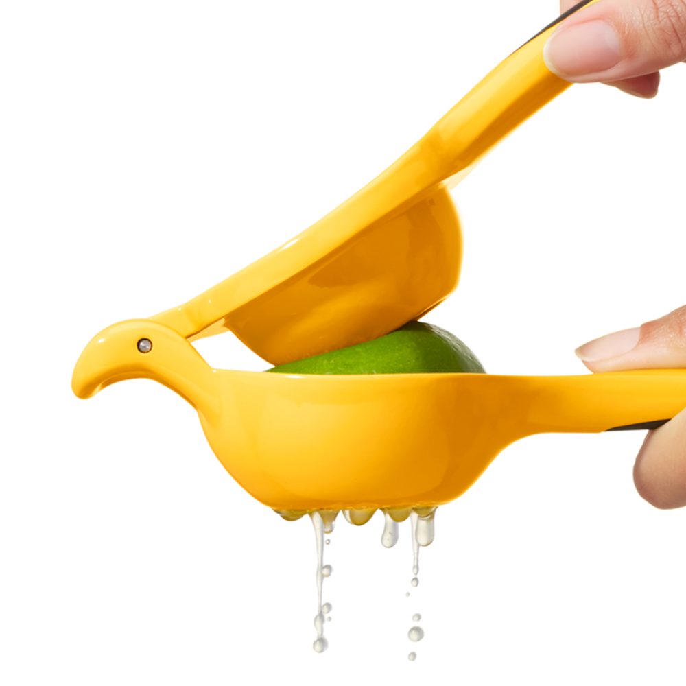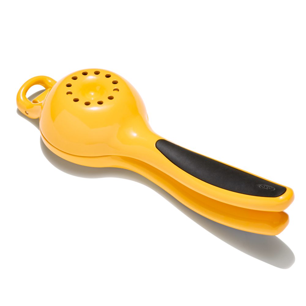 עם חורי סינון  כל שעליכם לעשות הוא לחתוך את הלימון לחצי הניחו את הפירות החתוכים כלפי מטה במסחטת האלומיניום ואז פשוט הצמידו את הידיות זו לזו: המסחטה מסננת את הזרעים תוך כדי סחיטת המיץ. לחצו את שתי הידיות יחד כדי לחלץ את המיץ. הידיות המונעות החלקה נועדו לספוג לחץ כדי לשמור על נוחות.