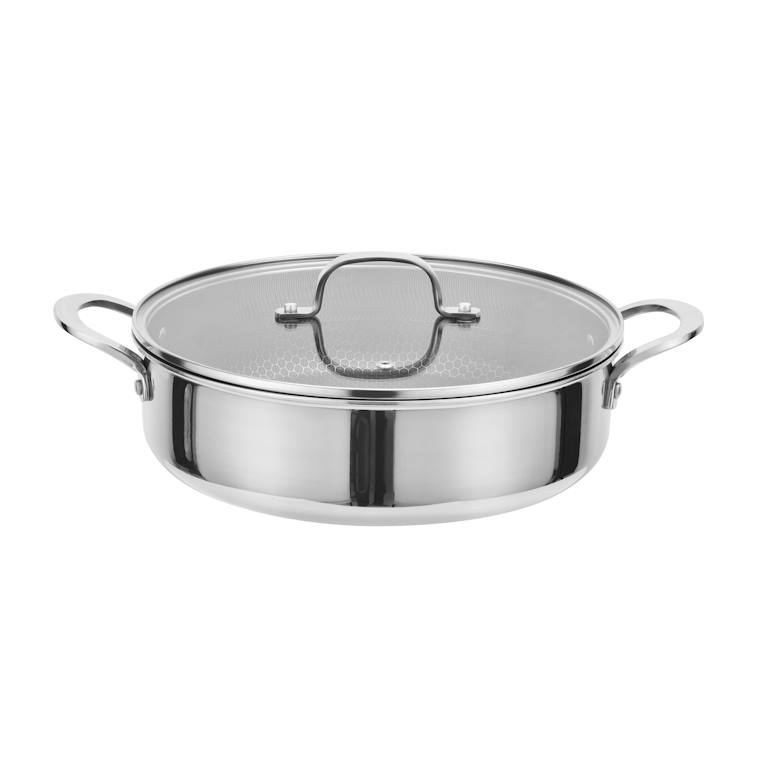 סוטז’ עם מכסה זכוכית מסדרת Hybrid Cooking משלב בין עיצוב מתקדם לטכנולוגיית בישול חדשנית, ומבטיח חוויית בישול בריאה, טעימה ונוחה יותר. הסיר עשוי משטח נירוסטה חיצוני איכותי, עמיד בפני שריטות וחום גבוה, ומשטח פנימי בטכנולוגיית Full Induction המבטיח פיזור חום אחיד, בישול מדויק וחיסכון של עד 30% בצריכת האנרגיה.
