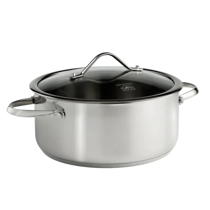 סוטז' נירוסטה בנפח 10 ליטר מסדרת אטלס – תוצרת חברת ארקוסטיל, סדרת סירים ומחבתות מעוצבים העשויים פלדת נירוסטה איכותית 18/10 השומרת על מראה חדש ומבריק לשנים רבות.