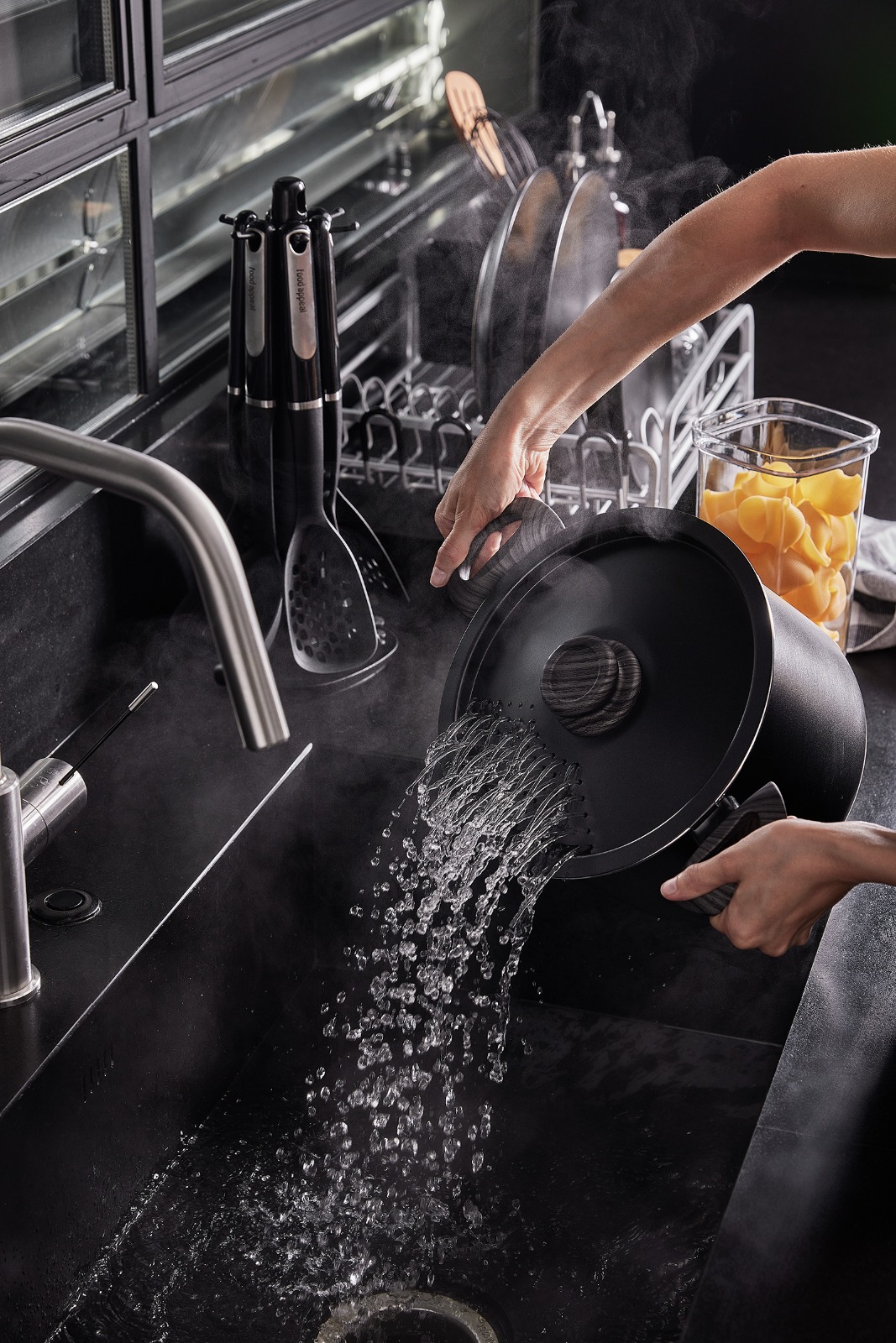 הידיות הנוחות לאחיזה, אינן מתחממות, אין צורך להכין מסננת מבעוד מועד ואין צורך לשטוף אותה!