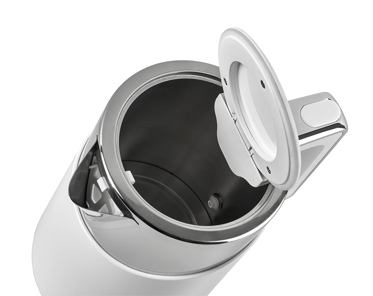 קומקום נשלף עשוי מפלדת אל-חלד (נירוסטה) עם מעטפת פלסטיק בצבעים לבן או שחור.
