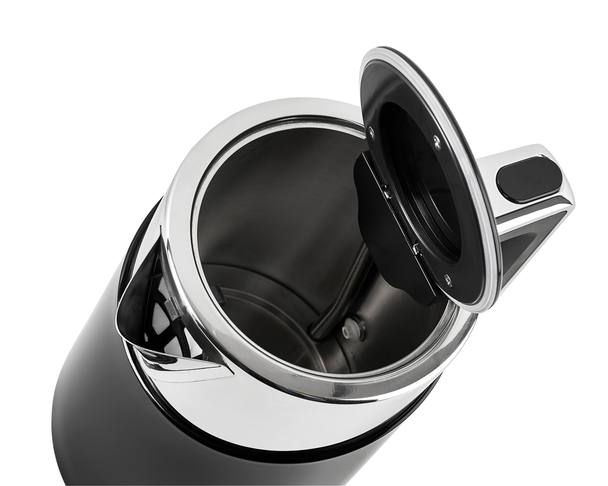 קומקום נשלף עשוי מפלדת אל-חלד (נירוסטה) עם מעטפת פלסטיק בצבעים לבן או שחור.